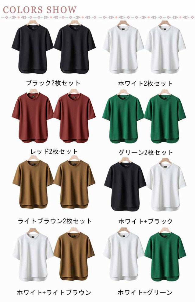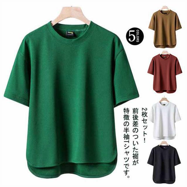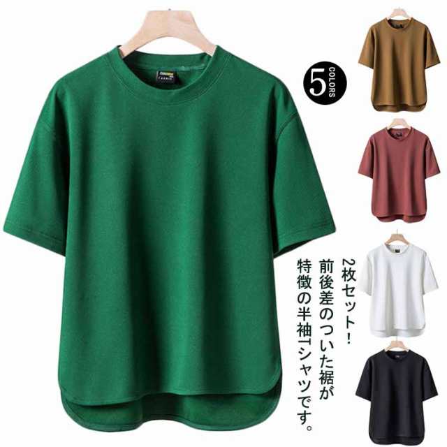 ゆったり 2枚セット tシャツ メンズ 半袖 シンプル 前後差 カットソー サイドスリット 薄手 30代 大きいサイズ トップス 無地 ユニセックス 20代 送料無料 40代 春 春服 夏 夏服