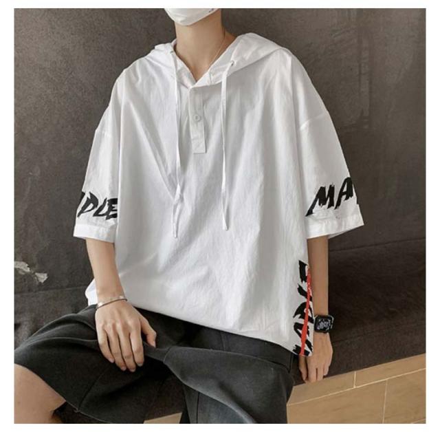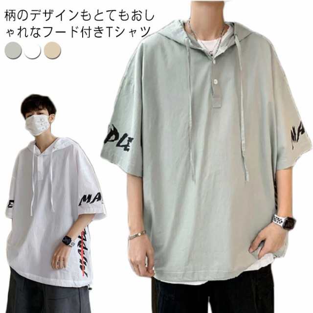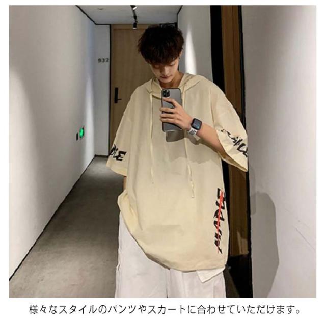 パーカー メンズ 半袖 フード付き Tシャツ カットソー 夏服 プルオーバー ゆったり 送料無料 涼しい 軽い 柔らかい カジュアル かっこいい 快適 大きいサイズ カジュアル