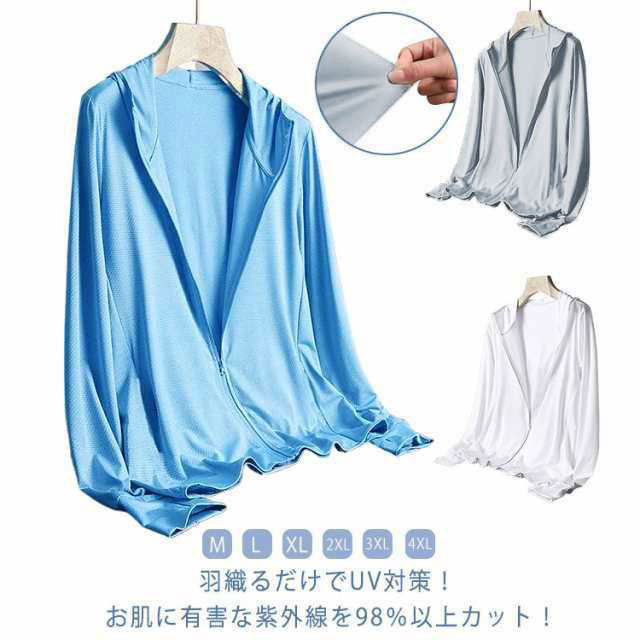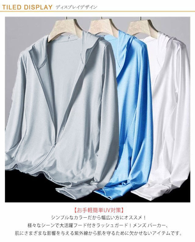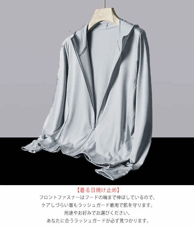 夏用 送料無料 フード付き 送料無料 ジャンパー 接触冷感 UVカット ジャケット 通気性 メンズ 長袖 ブルゾン 涼しい ひんやり 吸汗 速乾 紫外線対策 日焼け防止 冷房対策 無地 軽量 大きいサイズ M?4XL!ラッシュパーカー カジュアル アウトドア