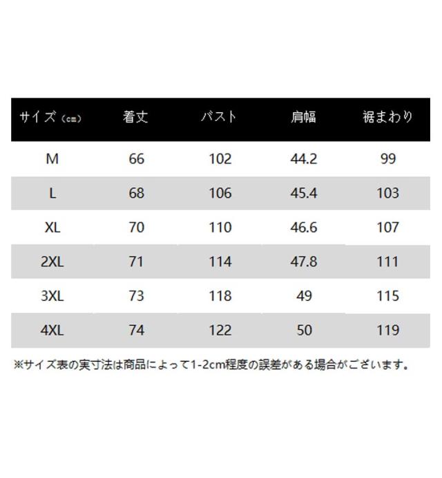 | サイズ | M L XL 2XL 3XL 4XL |