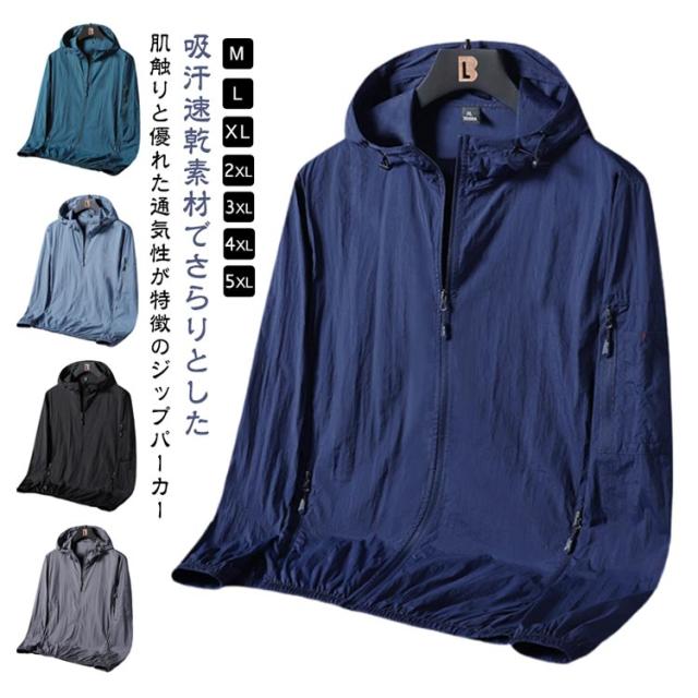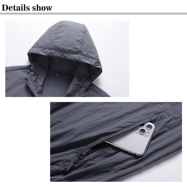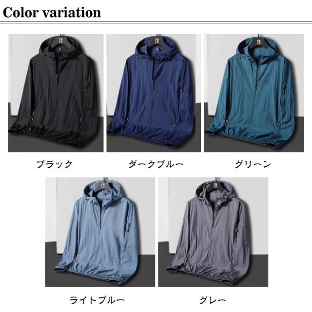 超軽量 日焼け止め服 フード付き ジップパーカー UVパーカー 超軽量 ウィンドブレーカー 防水 メンズ マウンテンパーカー 薄手 接触冷感 長袖 アウトドア 日焼け対策 紫外線対策 冷房対策 大きいサイズ ゆったり