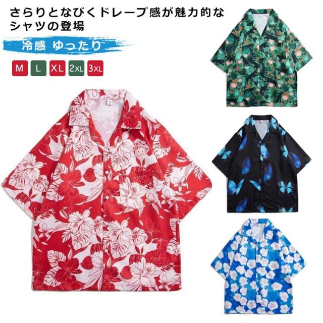 アロハシャツ メンズ 薄手 開襟シャツ 半袖 シャツ 冷感 ゆったり 大きいサイズ ひんやり 総柄 花柄シャツ 和柄 カジュアルシャツ 男性 トップス 夏 ビーチシャツ オープンカラーシャツ ヒップホップ ストリート系 韓国 ハワイ旅行 リゾート サーフ系 お洒落 送料無料
