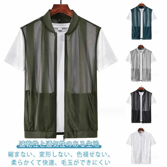 軽 メンズベスト メンズ 春夏 夏ベスト ベスト メッシュ ベスト 前開き ジレ 薄手 大きいサイズ 透け感 涼しい 速乾 通気性 ポケット付き ノースリーブ メッシュジレ カジュアル お洒落 デート キャンプ 山登り アウトドア