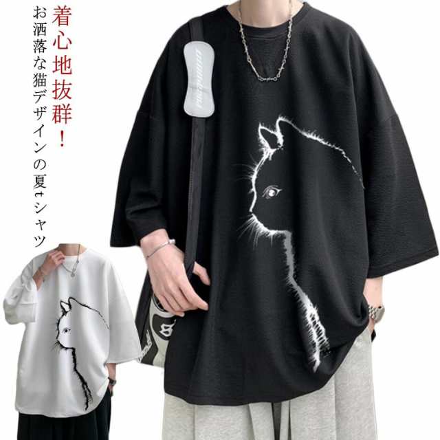 柔らかい Tシャツ tシャツ 楽ちん ゆったり 猫柄 メンズ 春夏 猫柄 半袖 可愛い 夏服 7分袖 体型カバー ルームウェア 大きいサイズ 部屋着 おしゃれ ワンマイルウェア カジュアル 通気性 お出かけ 半袖tシャツ ネコ 柄 ギフト プレゼント