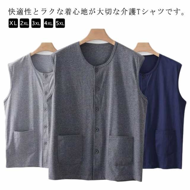 トップス 半袖 前開き 肌着 下着 ノースリーブ ルームウェア 吸汗速乾 インナーシャツ 手術 無地 入院 タンクトップ 介護用 部屋着 メンズ 男性用 大きいサイズ ポケット付き