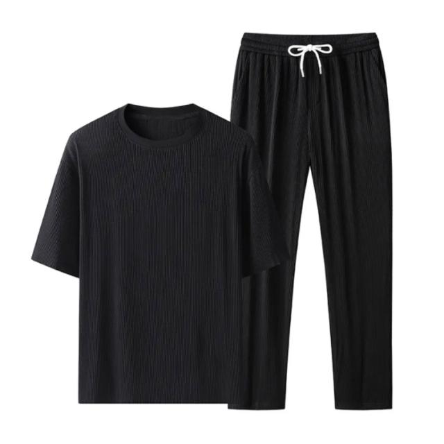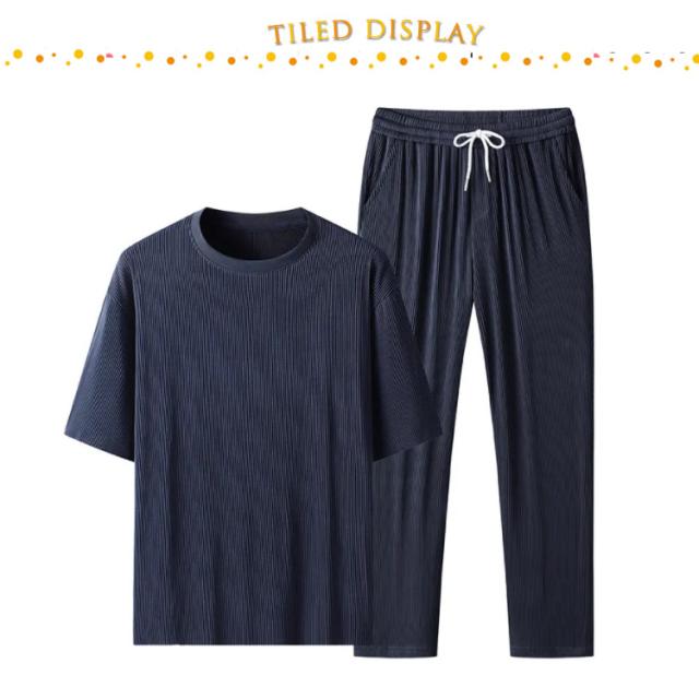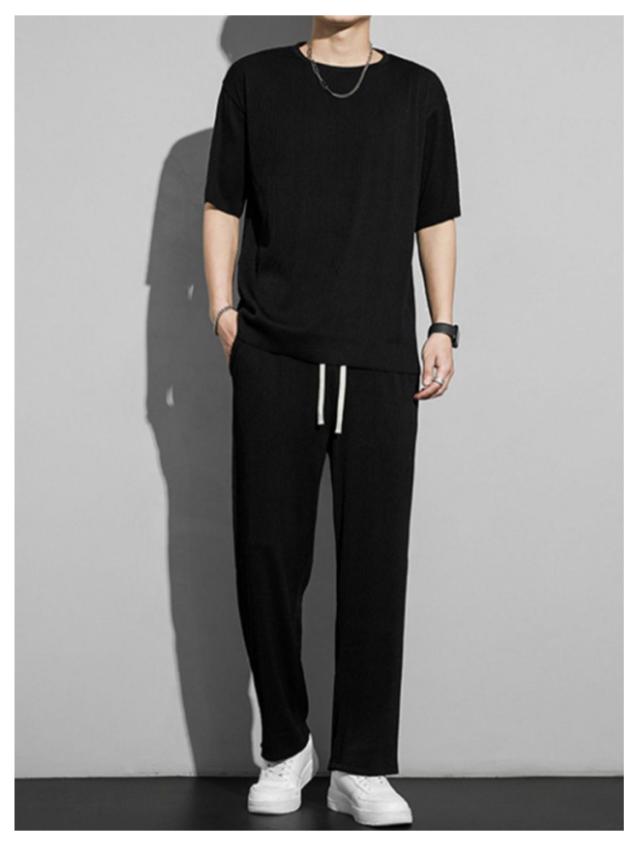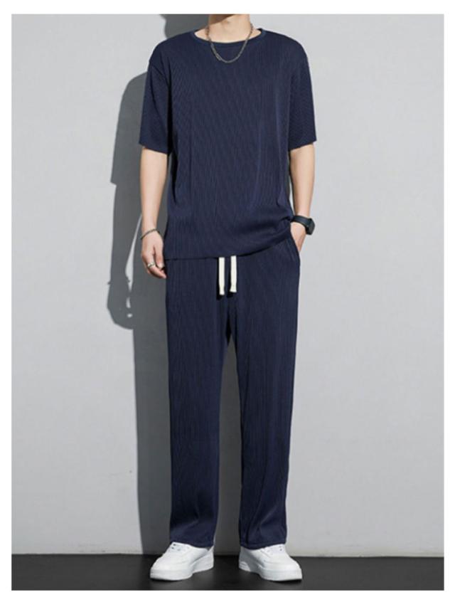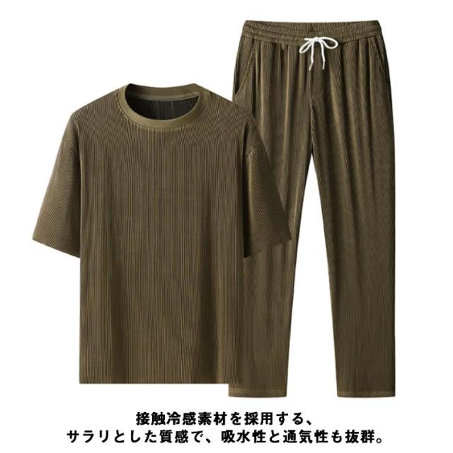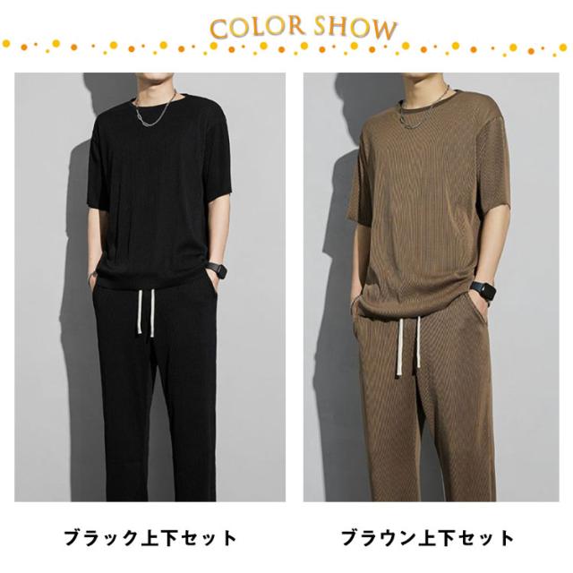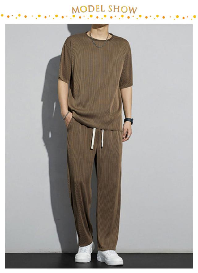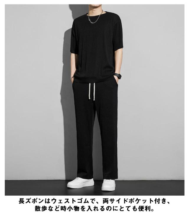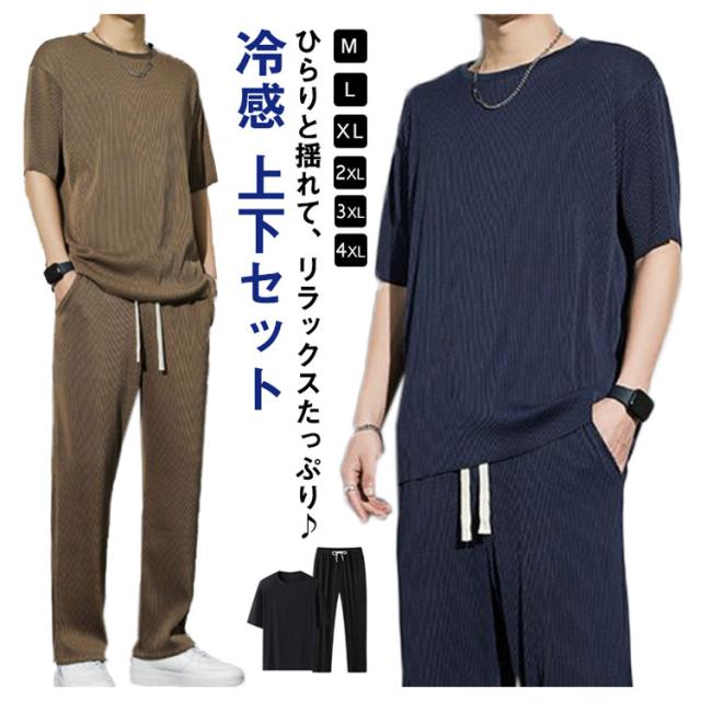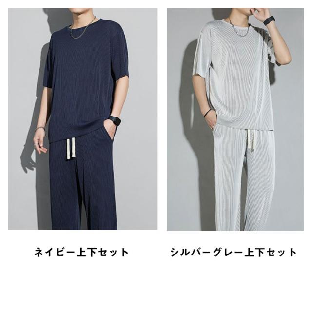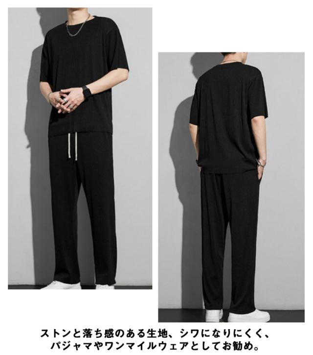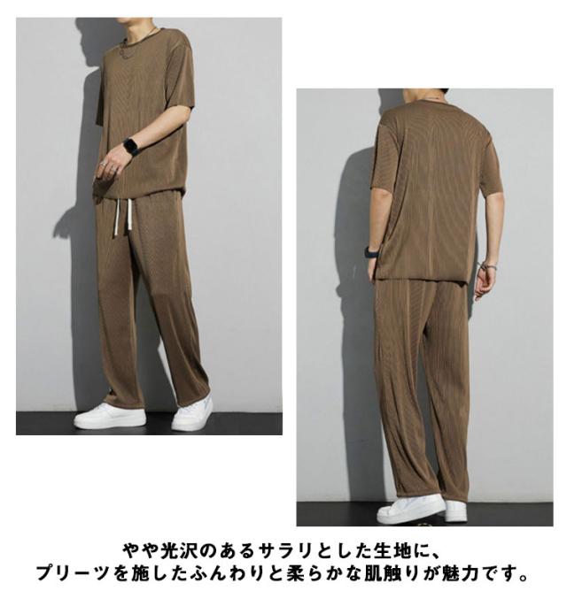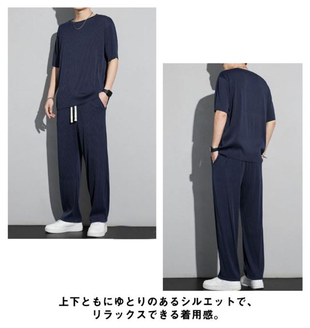 セットアップ メンズ ビッグTシャツ プリーツ とろみ 冷感 ワンマイルウェア 半袖Tシャツ ワイドパンツ 送料無料 スウェット 上下 ジャージ 大きいサイズ リラックス 夏服 ユニセックス カップル ペア 春夏