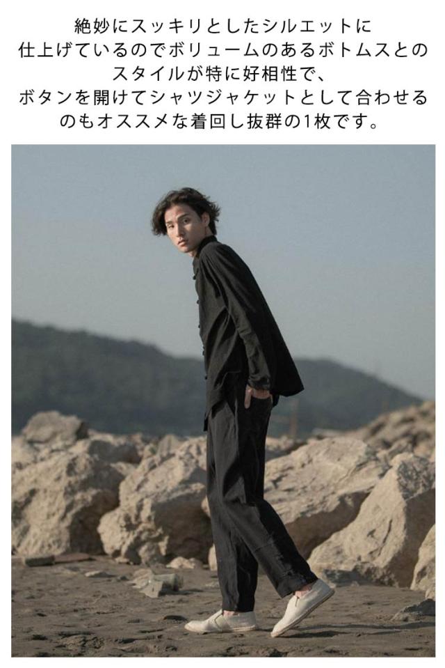 | チャイナテイストをデザインに盛り込んだチャイナシャツです。 夏にぴったりの綿麻素材で仕立てられたシャツです。風通しがいいので、夏の暑い時季にも涼しく着ていただけます。 民族衣装のチャイナシャツをモチーフとしながらも普段使い出来る様なデザインに纏め、現代的なモードテイストを感じられるスタイルにブラッシュアップしています。 ハンドカラーのネック部分は少し余裕を持たせた広さに設定し、程良くゆったりしたボディと相まって抜け感のあるラフな印象で着こなせます。 ボディと同カラーのチャイナボタンを採用する事で全体の統一感を高めており、普通のボタンとは一味違う紐結びが異国情緒溢れる特有の印象を与えてくれます。 絶妙にスッキリとしたシルエットに仕上げているのでボリュームのあるボトムスとのスタイルが特に好相性で、ボタンを開けてシャツジャケットとして合わせるのもオススメな着回し抜群の1枚です。 | |