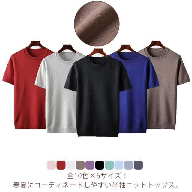 全10色×6サイズ!メンズ サマーニット ニット セーター 半袖 メンズ ニットトップス サマー 半袖ニット サマーセーター ニットTシャツ クルーネック プルーオーバー カジュアル おしゃれ 父の日 ギフト 大きサイズ 無地 薄手 上品 レイヤード 春 夏 秋 送料無料