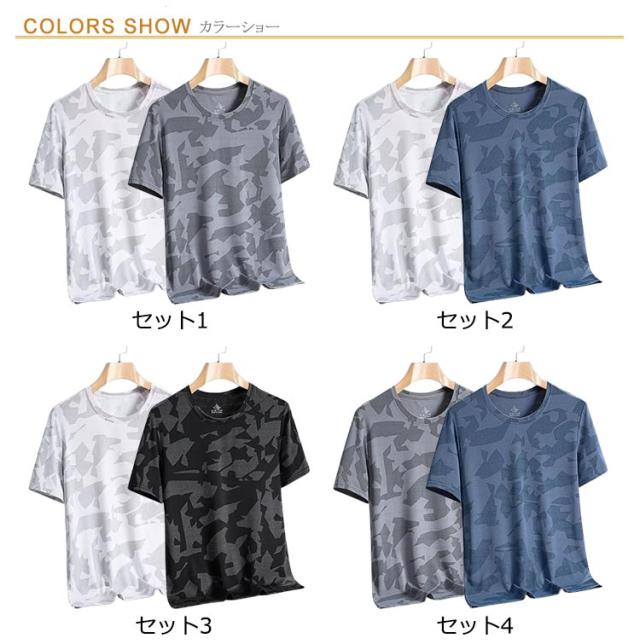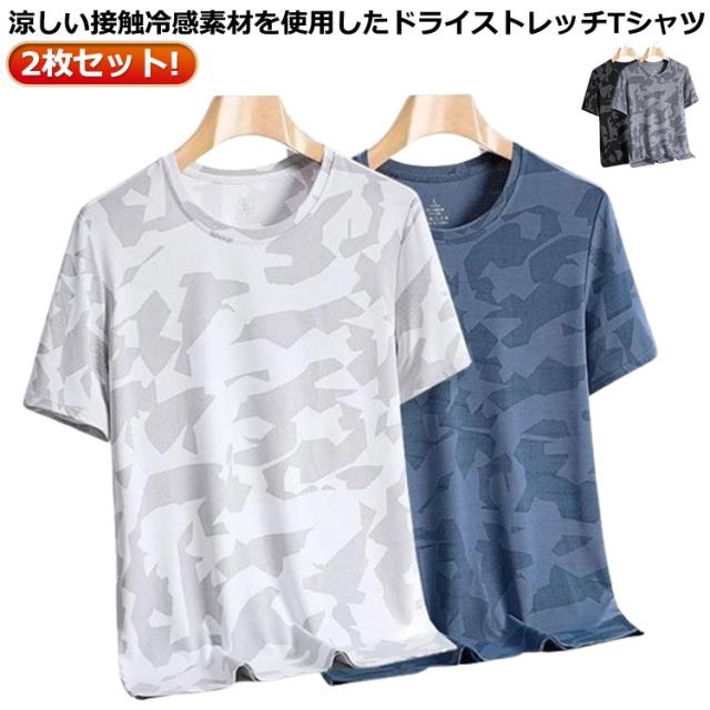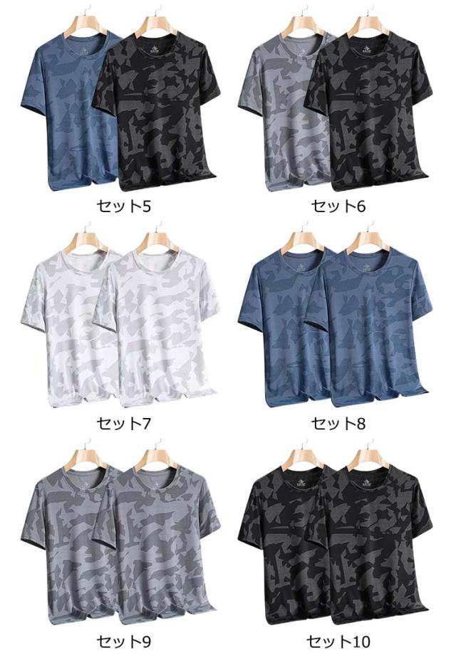 インナーウェア 2枚セット すっきり uvカット メンズ ストレッチ ドライ tシャツ 涼しい 接触冷感 迷彩tシャツ 半袖 カットソー Uネック 消臭効果 吸水速乾 半袖Tシャツ 夏 軽い 薄手 インナー 着痩せ 迷彩柄 オーバーサイズ ティーシャツ 大人 カジュアル