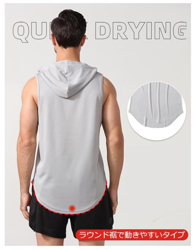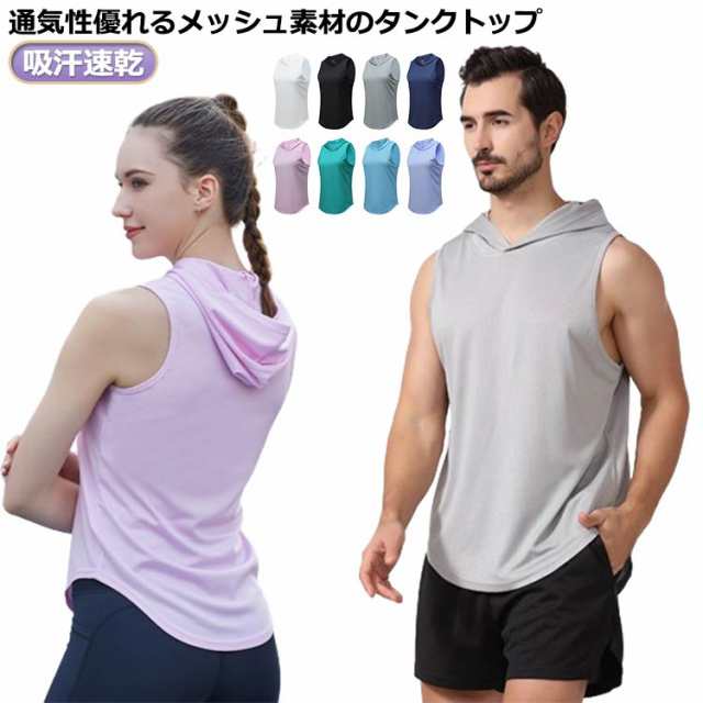 軽量 フード付き メッシュ トレーニングウェア 薄手 タンクトップ スポーツ 速乾 吸汗速乾 メンズ ノースリーブ トップス レディース トレーニングウェア 筋トレ メンズ スポーツウェア 吸汗 ジム 無地 ランニング