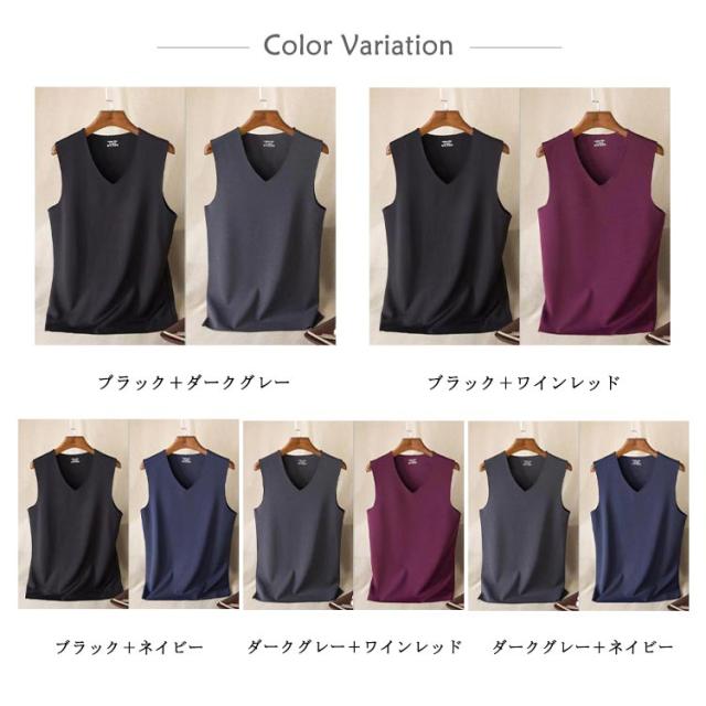 タンクトップ 無地 発熱インナー 裏起毛 メンズ 発熱 インナー あったか 裏起毛タンクトップ 裏起毛インナー 無地 Vネック 肌着 暖かい 秋冬 2点セット 2点セット 男性用 フィット