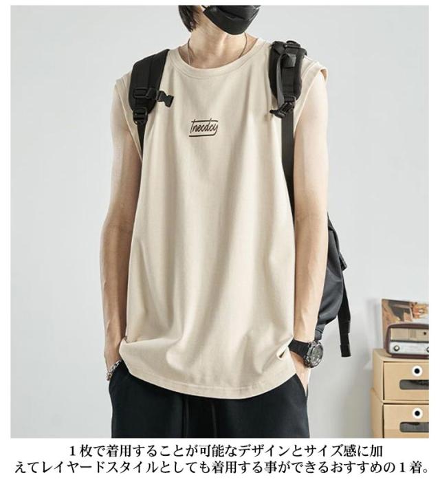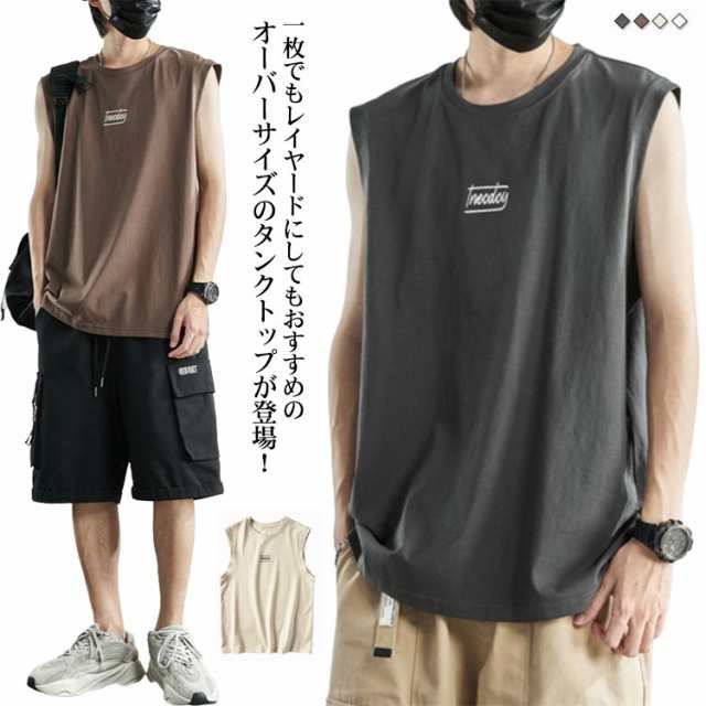 タンクトップ ロング メンズ クルーネック ノースリーブ カットソー tシャツ ゆったり オーバーサイズ スポーツ バスケットボール バスケ カジュアル トップス ルーズ タンクトップ 春 夏 ルームウェア 部屋着 大きいサイズ M L XL 2XL 3XL
