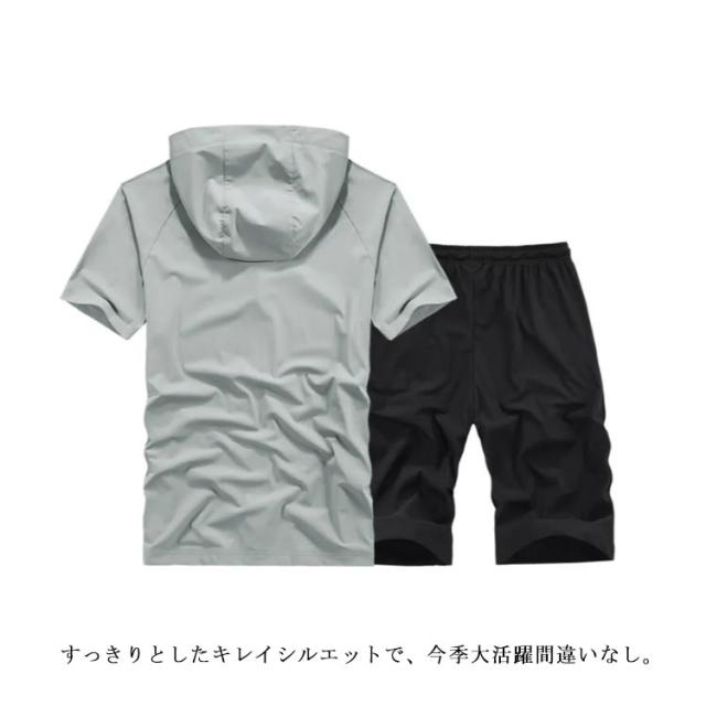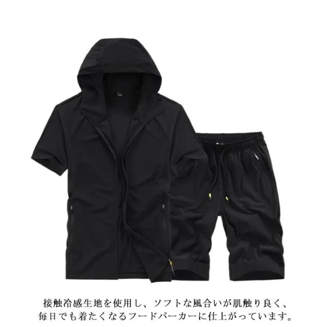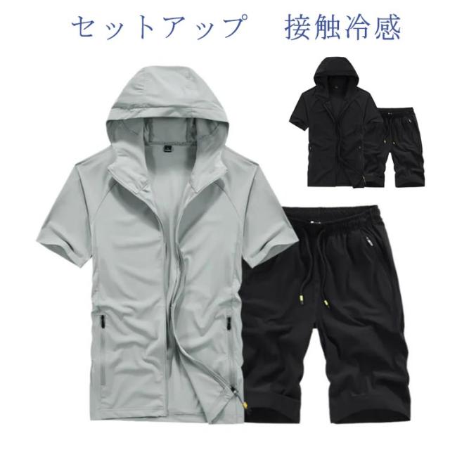 セットアップ メンズジャージ 半袖 接触冷感 アイスシルクパーカー スウェット 無地 半袖パーカー 上下セット Tシャツ おしゃれ 夏服 ハーフパンツ スポーツウエア ルームウェア 部屋着 ショートパンツ 大きいサイズ 通気性 送料無料