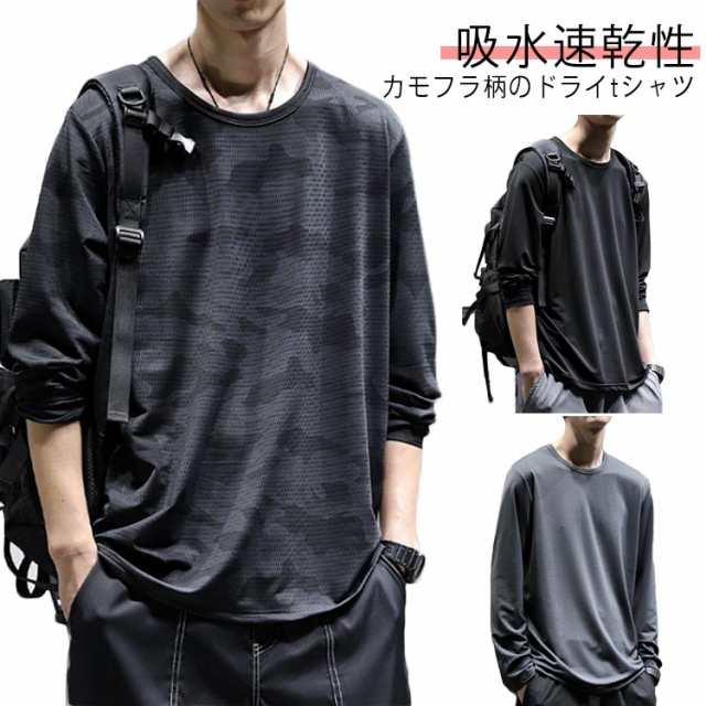 長袖Tシャツ カモフラージュ Tシャツ 迷彩柄 ドライ 長袖 メンズ ストレッチ 迷彩Tシャツ 吸水速乾性 紫外線防止 ドライTシャツ メッシュ アウトドア ミリタリー インナー ダンス 文化祭 大きいサイズ 夏