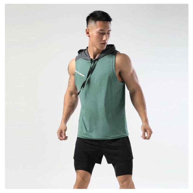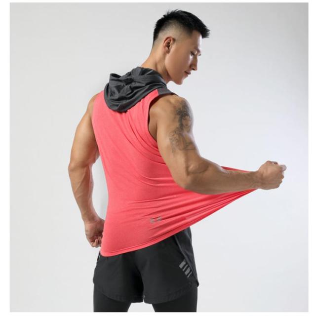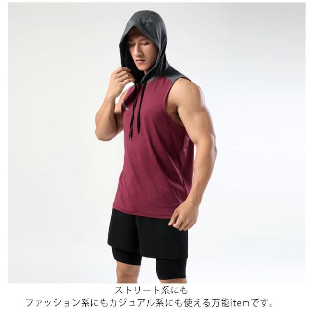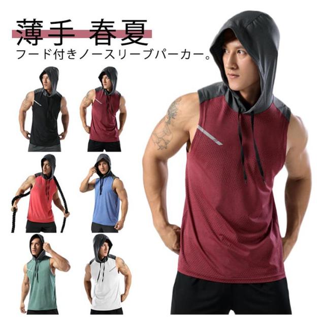 ノースリーブ メンズ パーカー 接触冷感 フード付き 速乾 タンクトップ ノースリーブ ストレッチ トップス 袖なし スポーツウエア トレーニング ダイエット