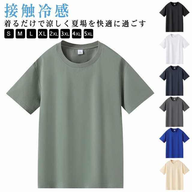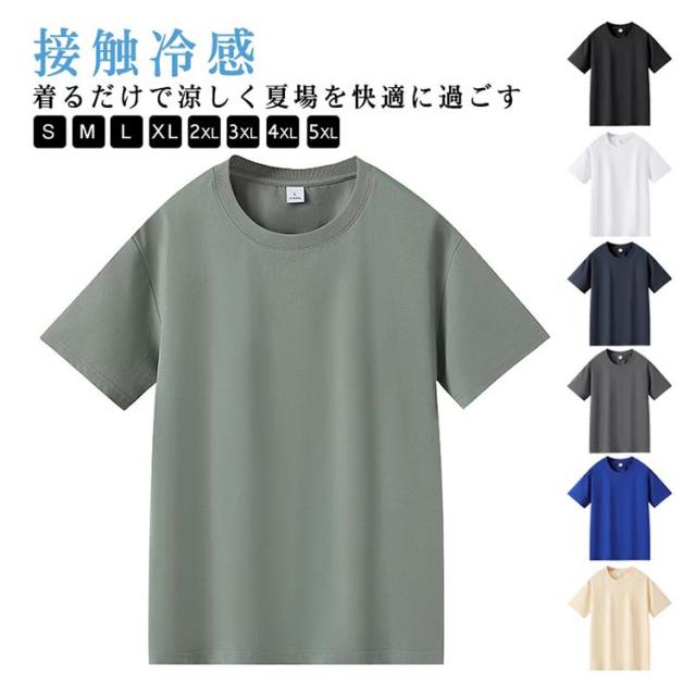 メンズ Tシャツ 接触冷感 大きいサイズ レディース 接触冷感 通気性 クルーネック ひんやり カジュアル 無地