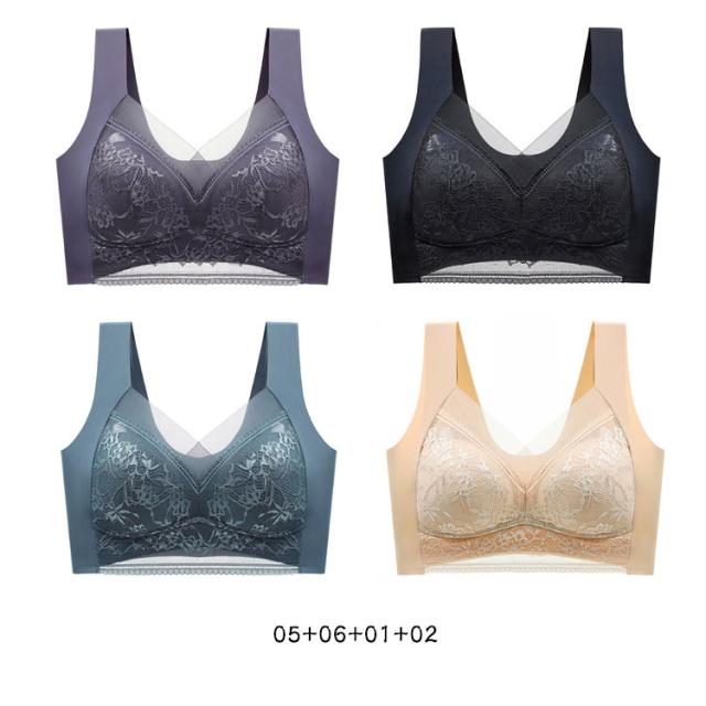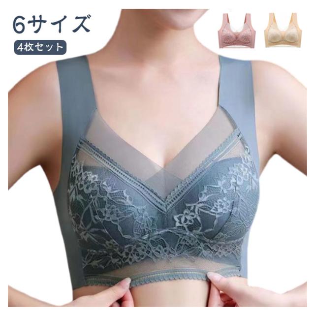快適 薄手 4枚セット ノンワイヤー ナイトブラ インナー ブラジャー 補正下着 育乳 送料無料 脇肉 サポート 幅広肩ベルト 軽薄 送料無料 レース 大きいサイズ 大きな胸を小さく見せる ブラトップ カップ付き マタニティブラ