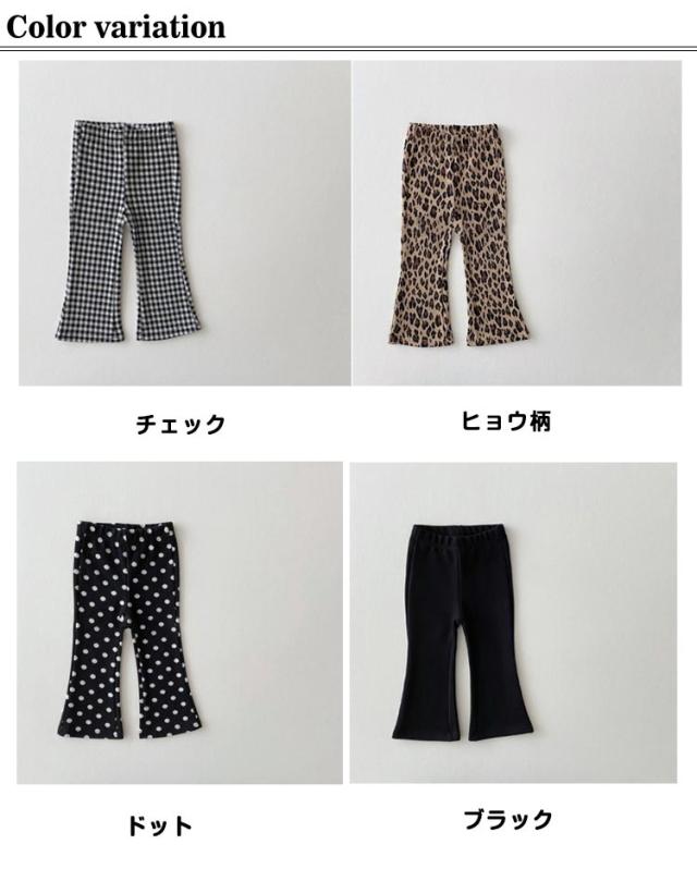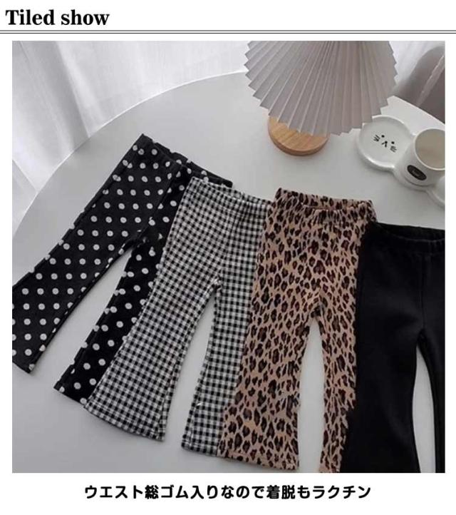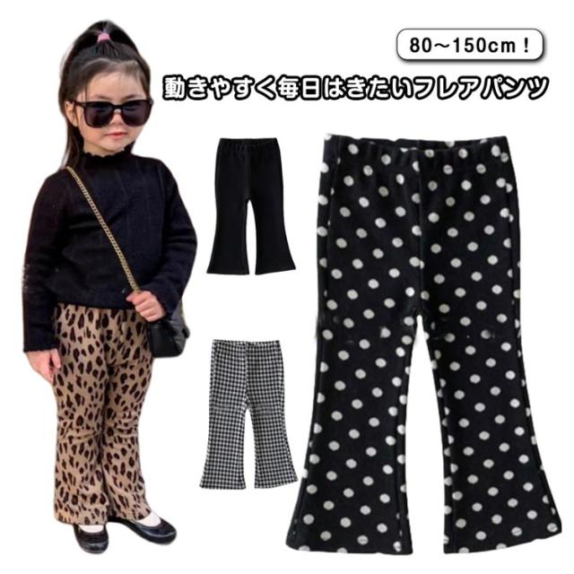 ベビー 90 ジュニア 子供服 キッズ ロングパンツ フレアパンツ 120 保育園 140 女の子 小学生 80 100 130 150cm 110 フレアパンツ キッズ レギンス スパンツ 美脚 伸縮 ストレッチ ウエストゴム ヒョウ柄 ドット柄 チェック柄 無地 春秋