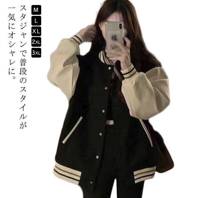 ブルゾン レディース スタジャン アウター 羽織り ジャケット ゆったり ジャンパー かわいい 体型カバー ライトアウター スタジャン お洒落 きれいめ オーバーサイズ カジュアル 大人可愛い 通勤 通学 韓国ファッション