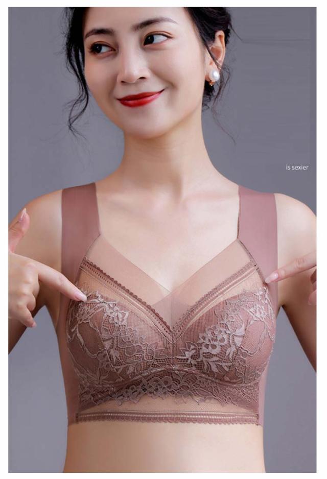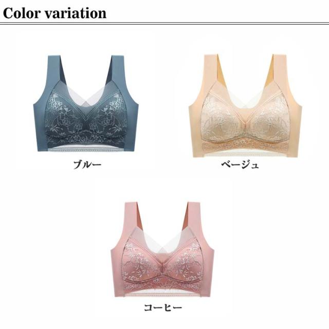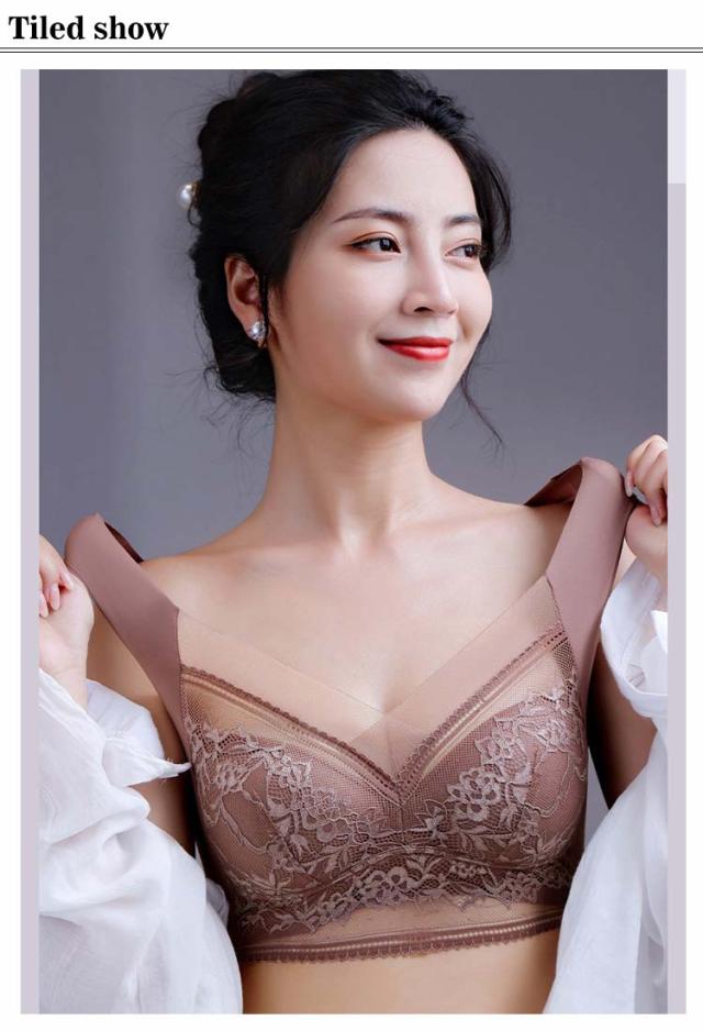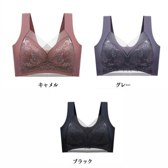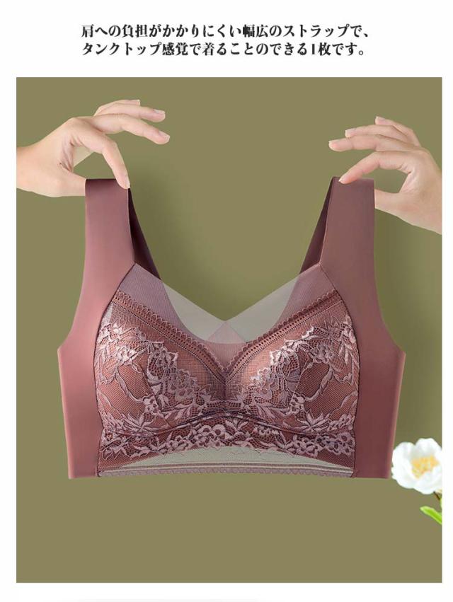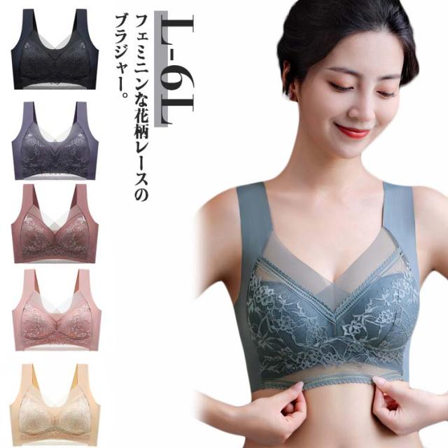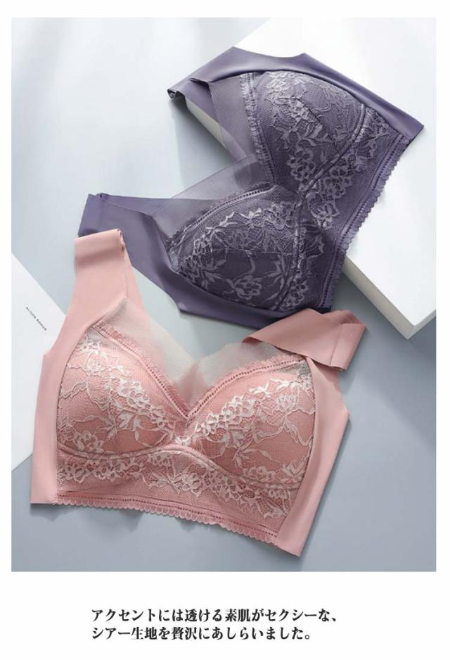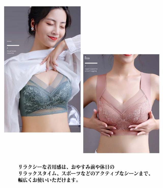 秋 女性 ノンワイヤー ブラ 春 胸を小さく見せる レディース 下着 肌着 単色 ブラトップ ブラジャー ノンワイヤー 夏 冬 レースとシアードッキング 大きな胸が小さく見える レース 透け感 フェミニン エレガント 可愛い
