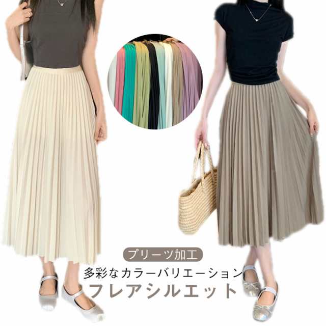 スカート ロング ロングスカート 春夏 フレアスカート 春 フレア プリーツスカート スカート プリーツ ミモレ丈 ウエストゴム Aライン きれいめ 低身長 高身長