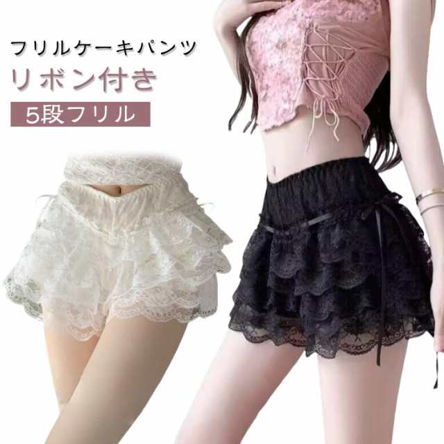 フリルケーキパンツ 白 フリルパンツ リボン コスプレ レース スカートのインナー ペチコート レディース 送料無料 5段フリル 衣装 アイドル ふんわりボリューム 送料無料 ガーリー 黒 ダンス 大人 ゴルフ 制服 部屋着 ペチパンツ
