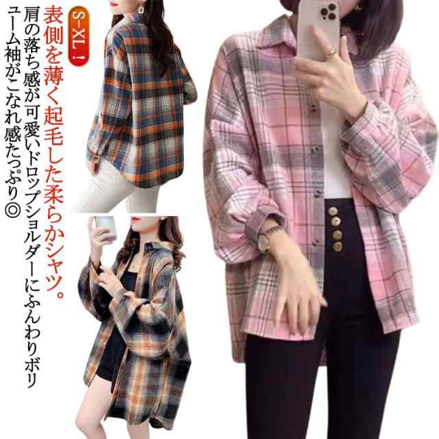 ネルシャツ 秋 微起毛 ネルチェックシャツ フリースネルシャツ チェックシャツ レディース シャツ ネルシャツ 大きいサイズ 大きめサイズ ビックシャツ ドロップショルダー ゆったり 春 冬 アウター 厚手 長袖 羽織り