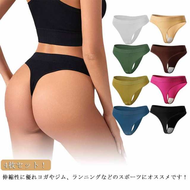 Tバック ひびかない タンガ スポーツ tバック シンプル 下着 パンツ ショーツ パンティー レディース 普段使い パンティライン 4枚セット 水着インナー 締め付けない ジム ランジェリー 上品 シームレス ティーバック ヨガ 春 夏