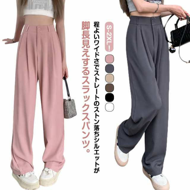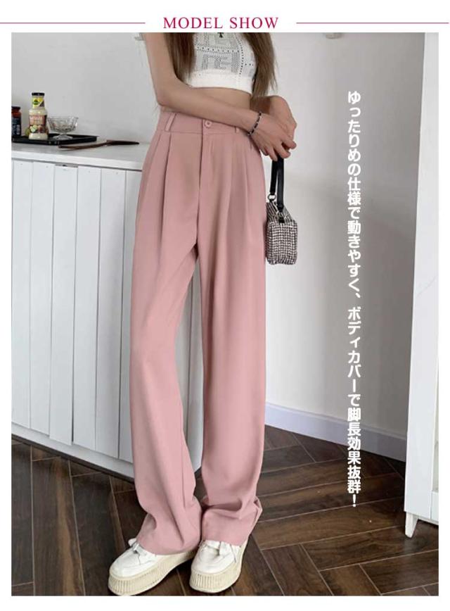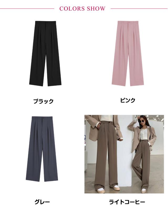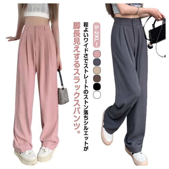 パンツ タック入り ワイドパンツ 楽ちん スラックス 体型カバー レディース スラックスパンツ 美脚 きれいめ パンツ ハイウエスト ストレートパンツ ボトムス 春 オフィス 大人 ロングパンツ 細見え 着痩せ スラックスパンツ 10分丈 夏 秋 通勤 カラーパンツ