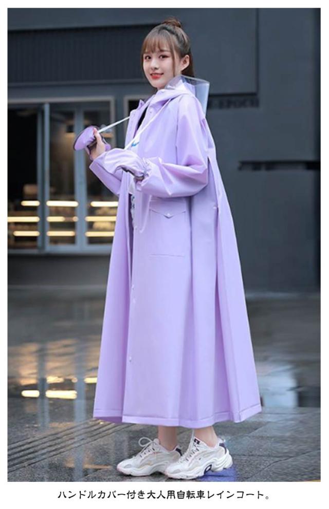 | ハンドルカバー付き大人用自転車レインコート。【リュック対応】 羽織るだけで衣類から濡れることを防ぐことができる。 一見レインコートとは思えないようなスタイリッシュなデザイン。 襟高設計、ロング丈、二重になったゴム袖、ファスナーからの雨の侵入を防ぐW構造など、細部までこだわりました。 ちょっとした小物が入れられるサイドポケット×2 足元までしっかりカバーするロング丈で、雨の日のお出かけや自転車でも安心です! 普段使いに、フェスやアウトドアに、様々なシーンで活躍するアイテムです♪ | |