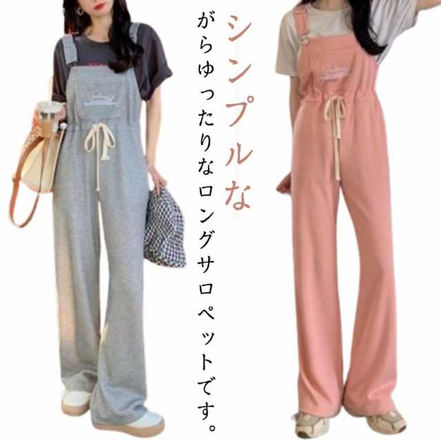 パンツ ボトムス サロペ レディース スウェット 無地 部屋着 大きいサイズ グレー スエット ロング オーバーオール トレーナー オールインワン ルームウエア ママ つなぎ オールインワン オールインワン ポケット付き ウエスト紐 着痩せ 脚長効果 春夏秋