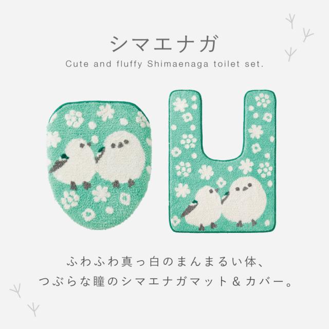 トイレマット フタカバーセット シマエナガ 可愛い おしゃれ お洒落 厚手 ふかふか インテリア トイレ フタカバー マット セット 洗える 滑り止め 洗浄暖房 蓋カバー 耳長トイレマット・フタカバーセット シマエナガ