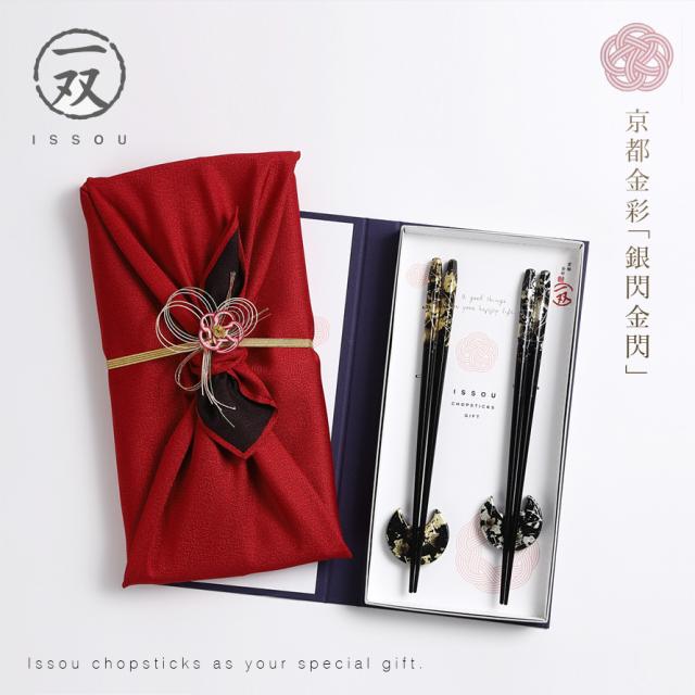 箸 結婚祝い 結婚記念日 ペア プレゼント 一双 issou イシダ 日本製 高級 夫婦箸 お箸 箸置き セット ギフト 結婚 祝い 友達 夫婦 両親 お祝い おしゃれ 一双 ブックケース京都金彩銀閃&金閃