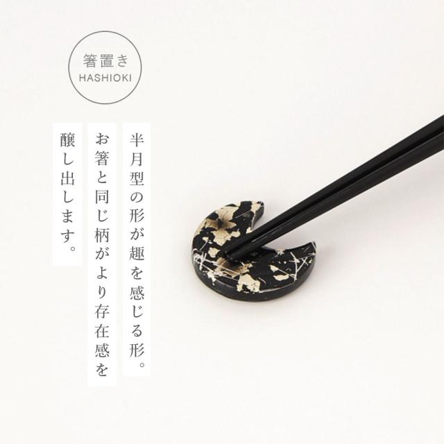 箸置きは、趣を感じる半月型の形。お箸と同じ柄が、より特別感を醸し出します。
