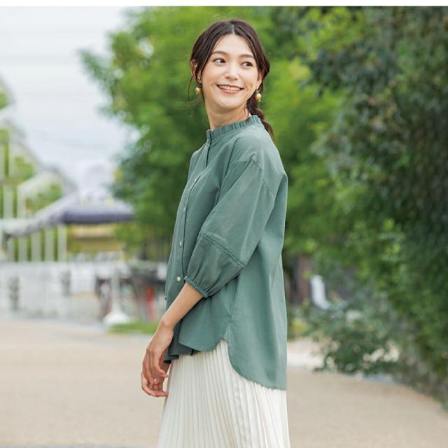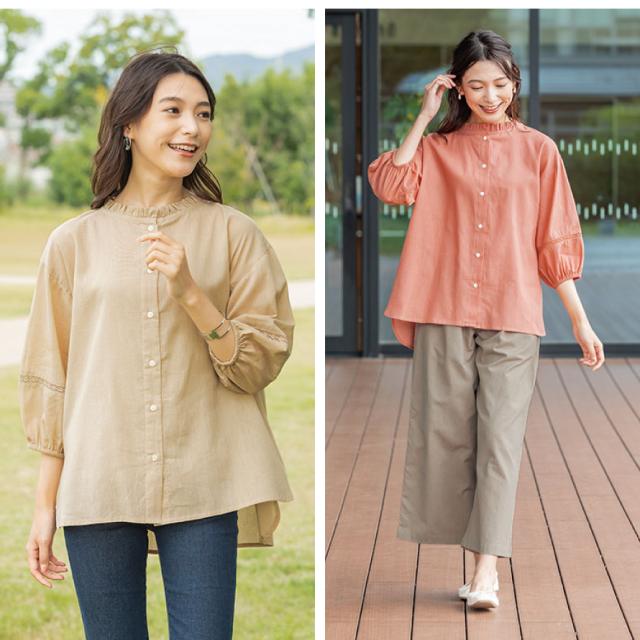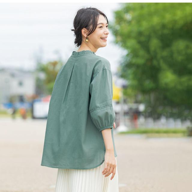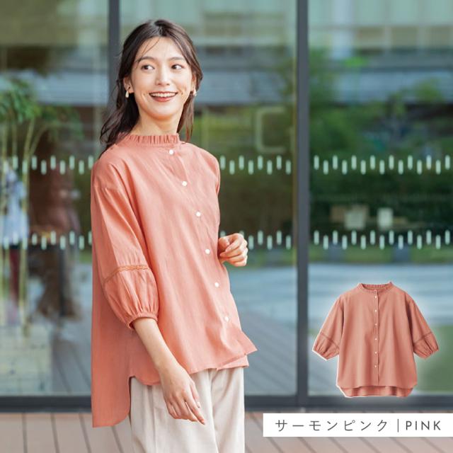 ふんわり袖 ブラウス,ブラウス スタンドカラー 七分袖,フリル 襟 ブラウス,ブラウス,フリルブラウス,インド綿,エコテックス認証,綿100%,コットン100%,綿,コットン,100,肌に優しい,敏感肌,乾燥肌,7分袖,七分袖,ふんわり袖,袖,ふんわり,後ろ長め,後ろ,長い,フリル,フリル衿,立ち襟,スタンドカラー,フリルネック,レース,大人可愛い,ベージュ,ミント,グリーン,緑,サーモンピンク,ピンク,M,L,LL,春,夏,春夏,大人,レディース,女性,20代,30代,40代,50代,おしゃれ,お洒落,オシャレ,かわいい,可愛い,シンプル,カジュアル,きれいめ,体型カバー,コーディネート,着回し,細見え,着痩せ,着心地