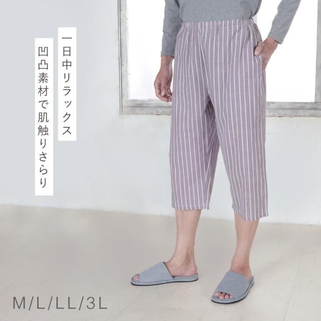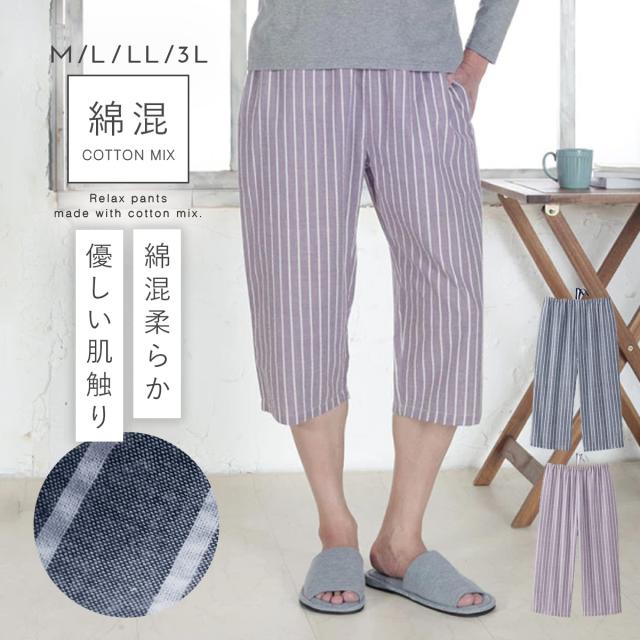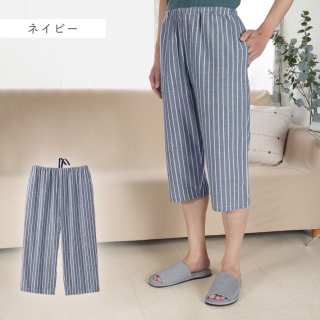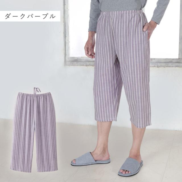 ルームパンツ メンズ,ルームパンツ 部屋着,ルームパンツ 大きいサイズ,パンツ,ルームパンツ,ズボン,下,下だけ,下のみ,ズボンだけ,ズボンのみ,6分丈,六分丈,膝下,ひざ下,綿混,綿,コットン,涼しい,涼しげ,ポケット付き,ポケット,ストライプ,ネイビー,紺,ダークパープル,パープル,紫,M,L,LL,3L,大きいサイズ,大きめ,ゆったり,パジャマ,ルームウェア,ホームウェア,部屋着,ナイトウェア,寝間着,ねまき,寝巻き,ウエストゴム,総ゴム,ウエスト,ゴム,締め付けない,しめつけない,苦しくない,さらさら,サラサラ,サラっと,さらっとしている,さらり,サラリ,爽やか,さわやか,べたつかない,ベタつかない,春,夏,春夏,大人,メンズ,男性,シニア,高齢者,お年寄り,おしゃれ,お洒落,オシャレ,
