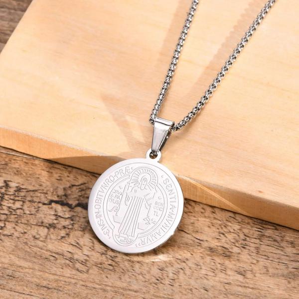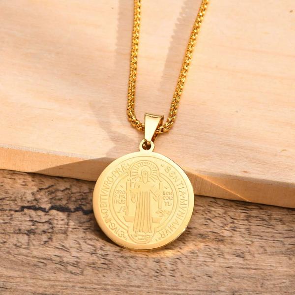 Vnox-ステンレス鋼のベネディクトメダルネックレス,ベネディクト,ゴールドカラー,マクラメダルアートが施されたビジョンジュエリー,チェーンが含まれています