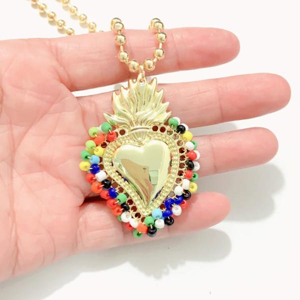 聖心のお守りネックレス,チャームネックレス,神のタロット,手,クリスチャン,メキシコ,カトリック,宗教的なジュエリー