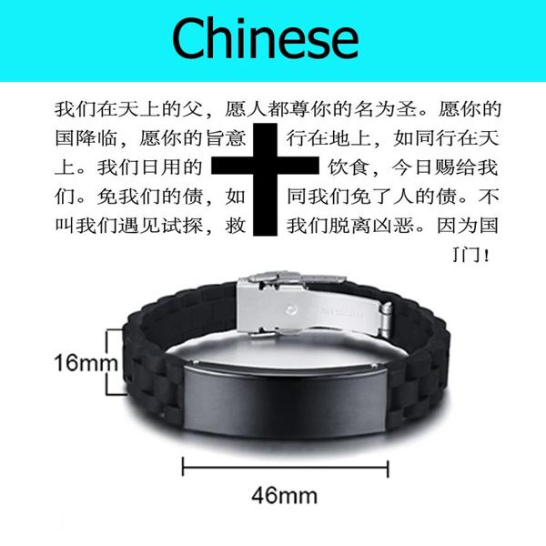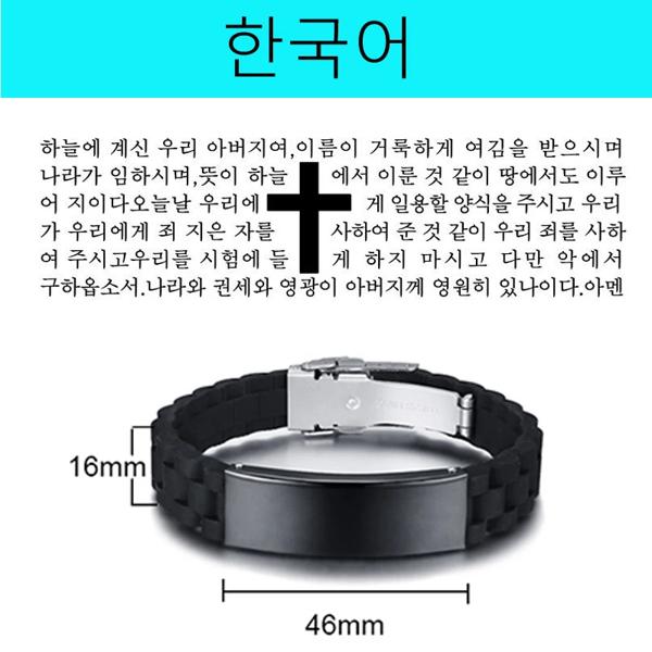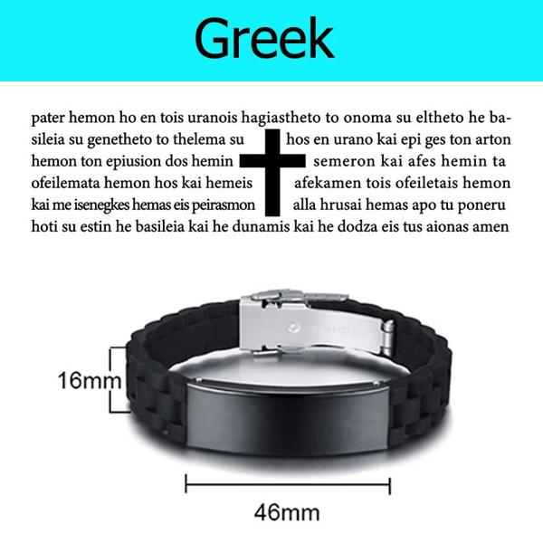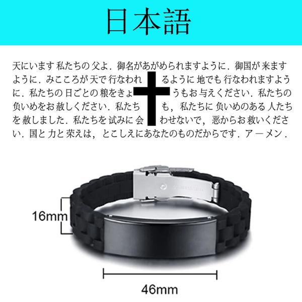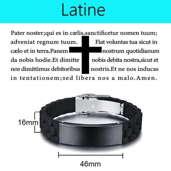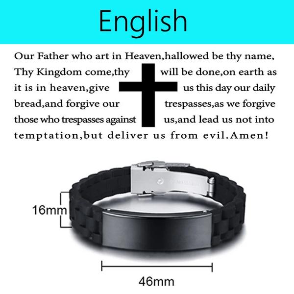 刻まクリスチャン主の祈り黒シリコンブレスレット男性ドイツフランスヘブライ語多言語brazalets