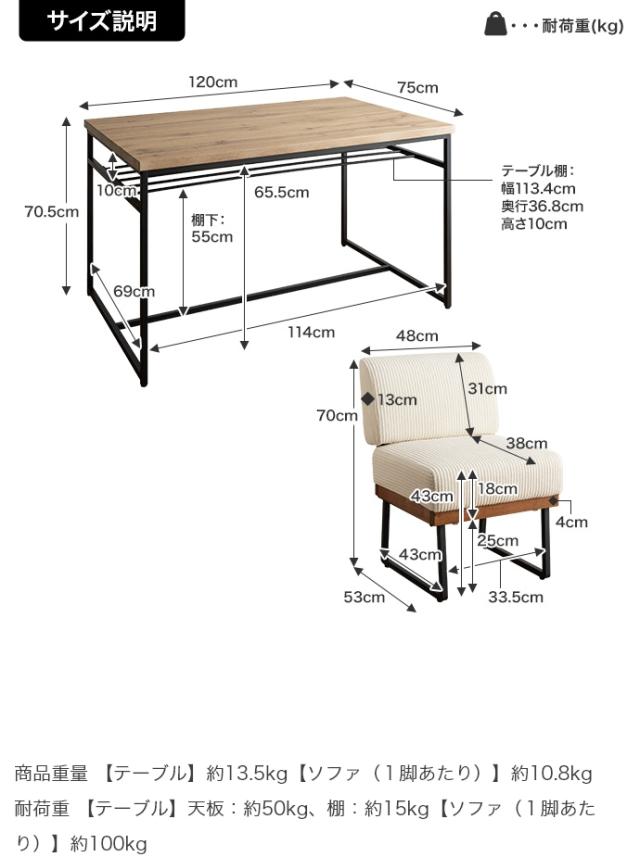 テーブル)幅120cm×奥行75cm×高さ70.5cm