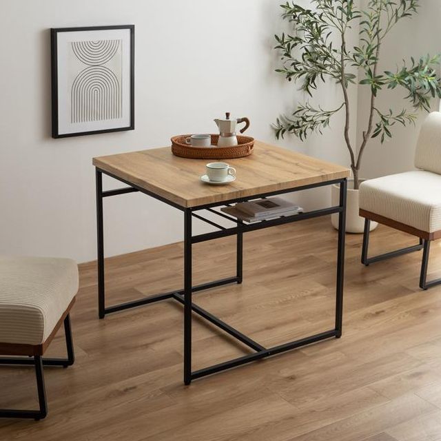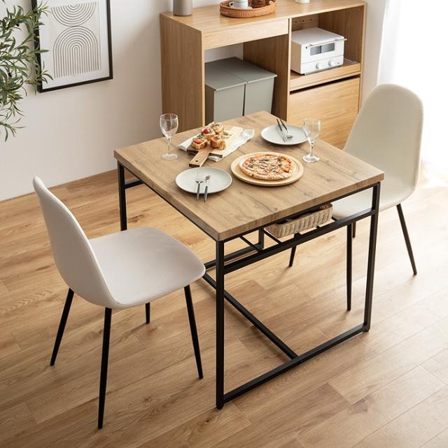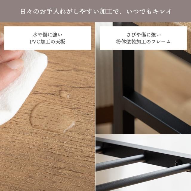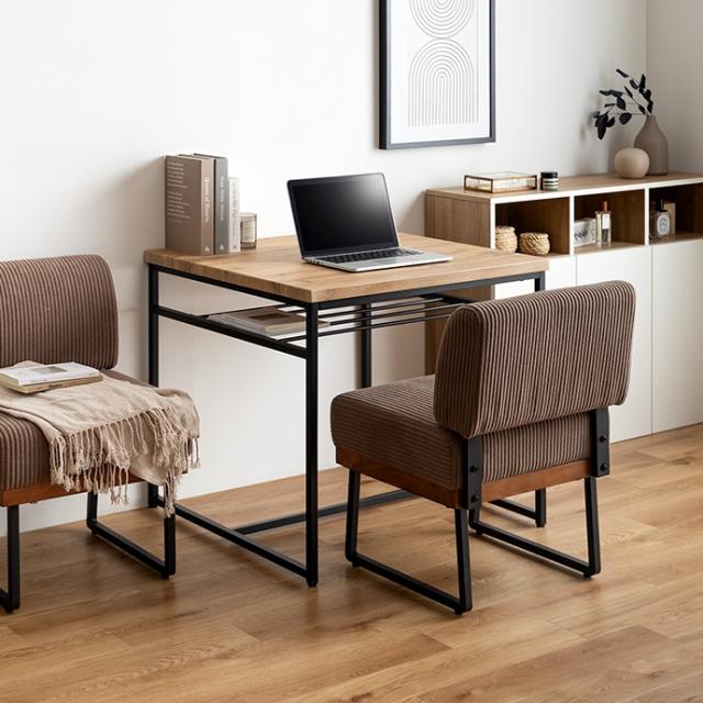 温もりを感じる木目調の天板とスタイリッシュなアイアン脚が、まるでカフェのような落ち着いた空間を演出します。