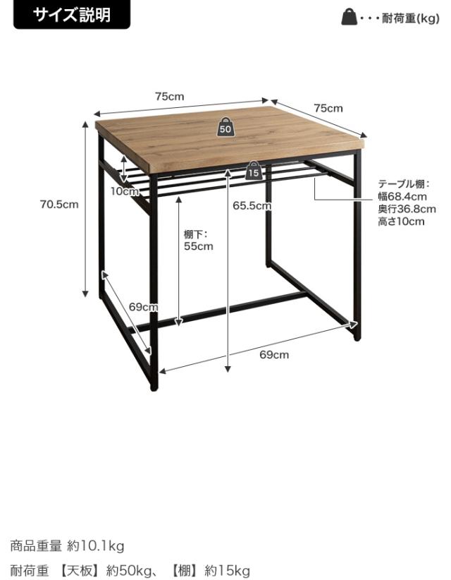★国内メーカー保証付★ ダイニングテーブル 棚付き テーブル 単品 幅75cm メーカー直送 送料無料