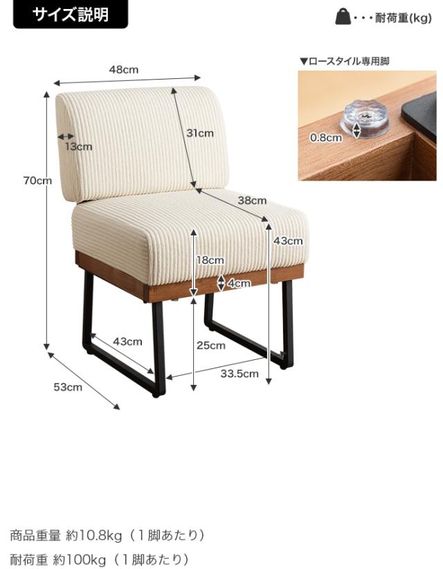 ロー脚使用時)高さ46.3cm(座面高18.8cm)