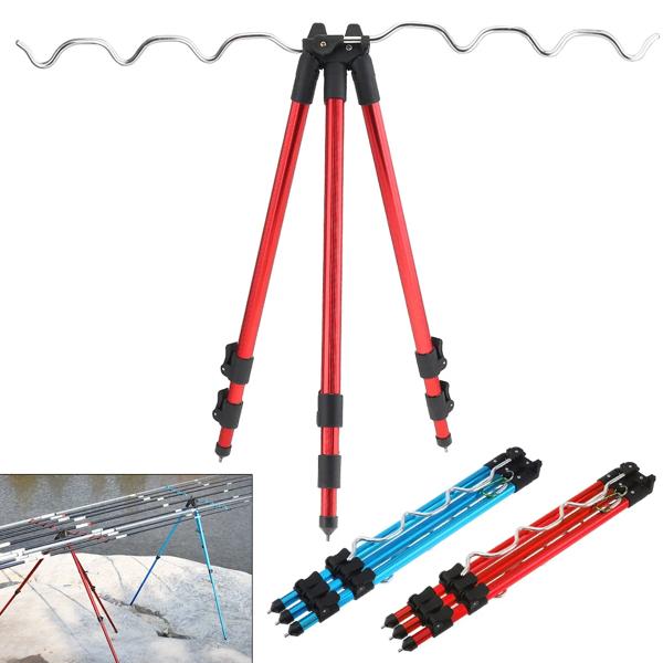 強力なアルミ合金伸縮7溝釣竿ホルダー折りたたみ三脚スタンド海釣りポールブラケット青赤オプション