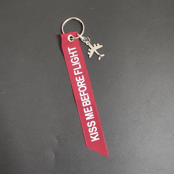 Kiss Me Before Flight Car Key Chain Red Ribbon Aviation Gifts Keyring Key Tag Holder for Motorcycles Keychain chaveiro