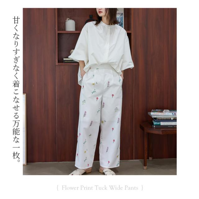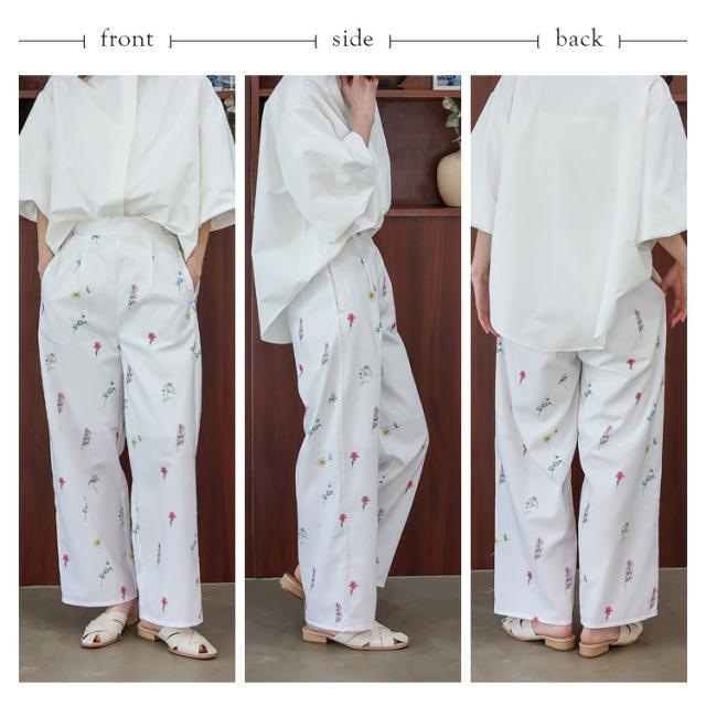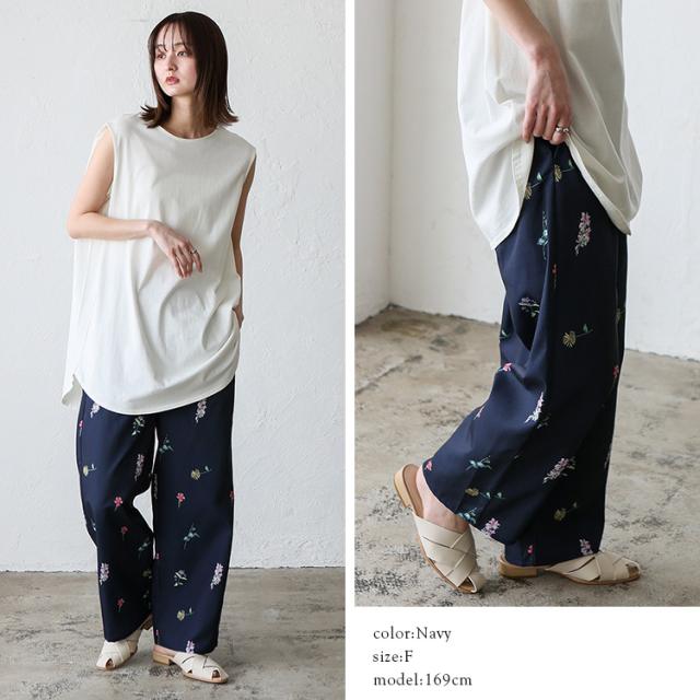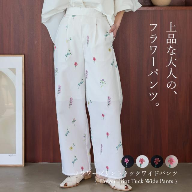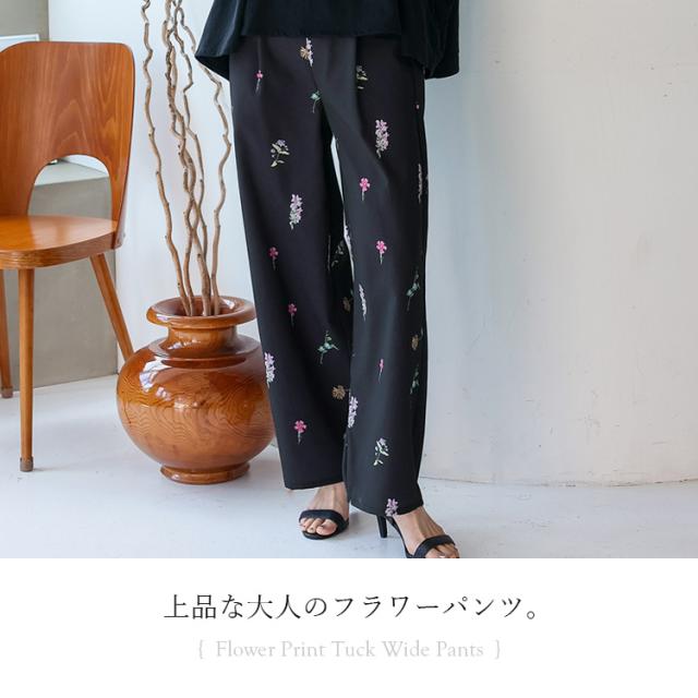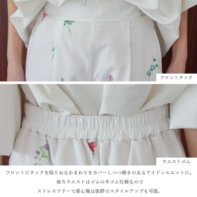 ワイドパンツ レディース きれいめ 春 夏 花柄 フラワープリント 上品 大人 イージーパンツ ウエストゴム フロントタック 高身長 ロングパンツ ボトムス 体型カバー かわいい ゆったり ストレート ボトムス ロング丈パンツ 長ズボン blc-y29500 【メール便】