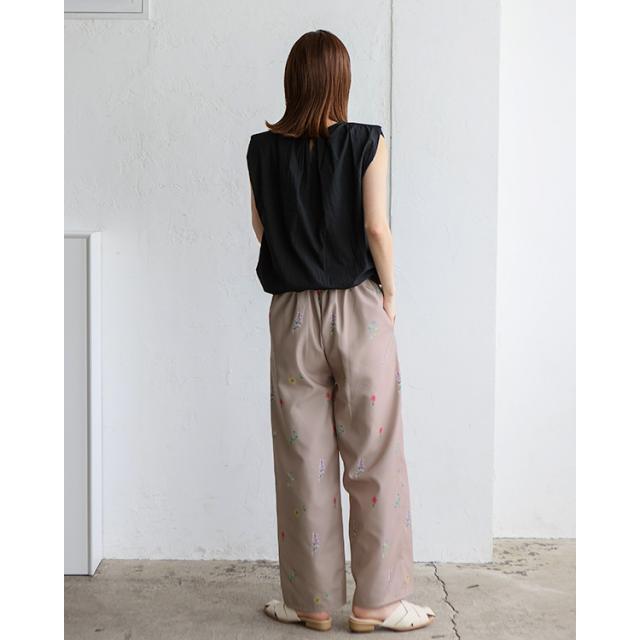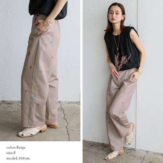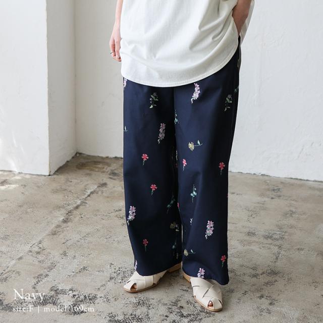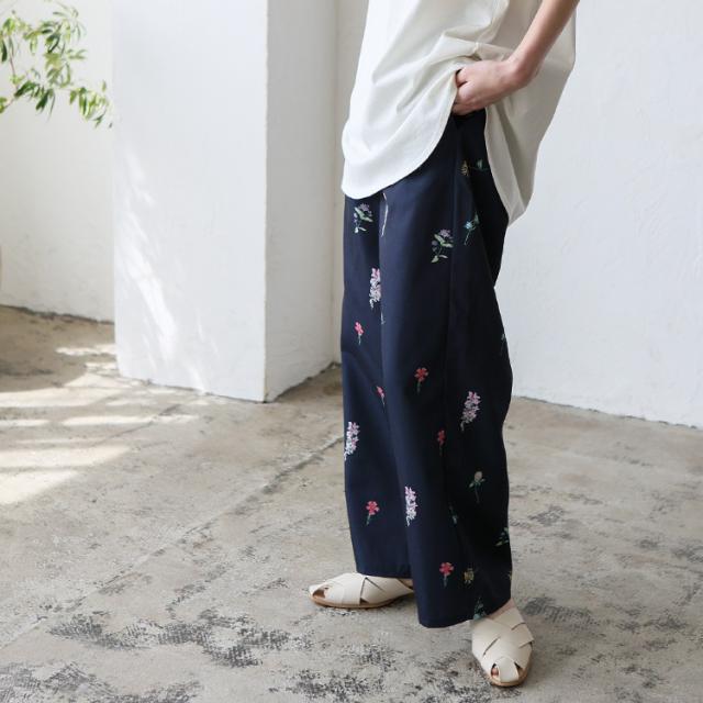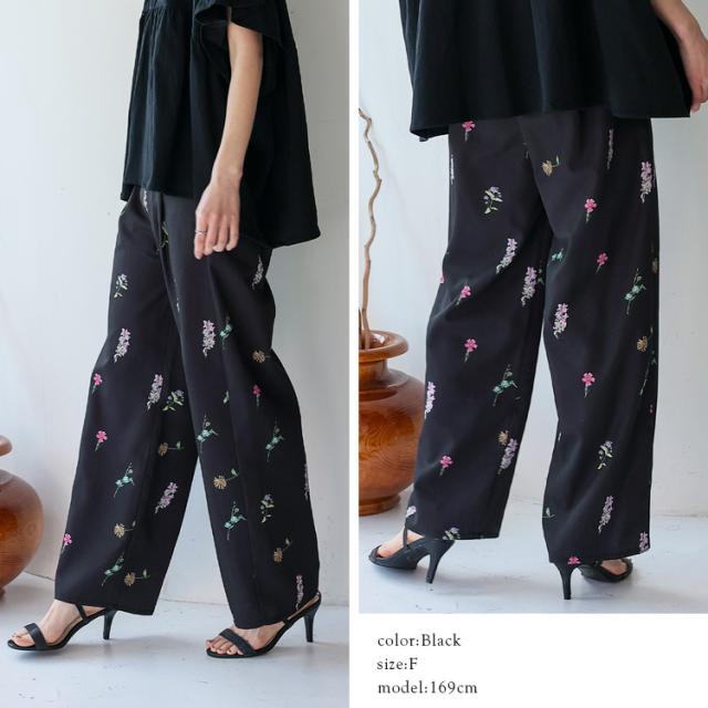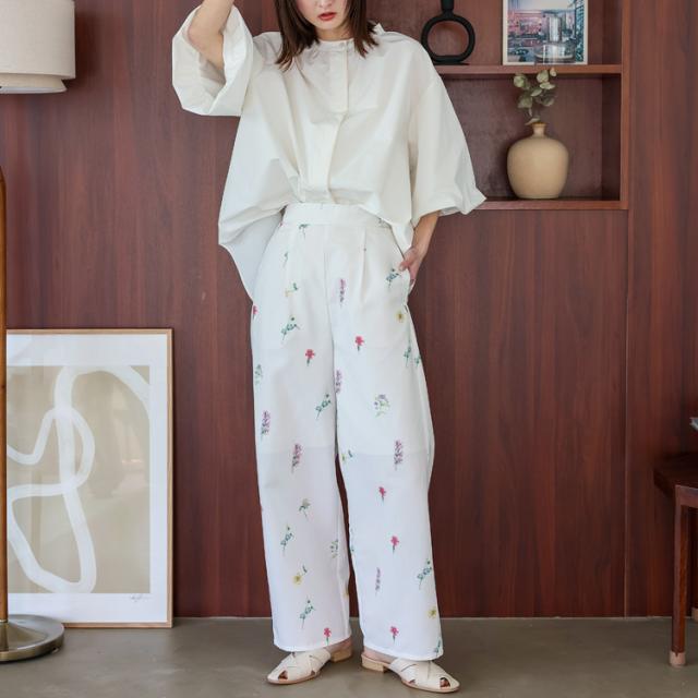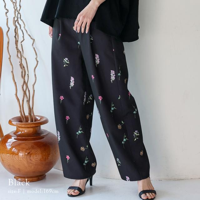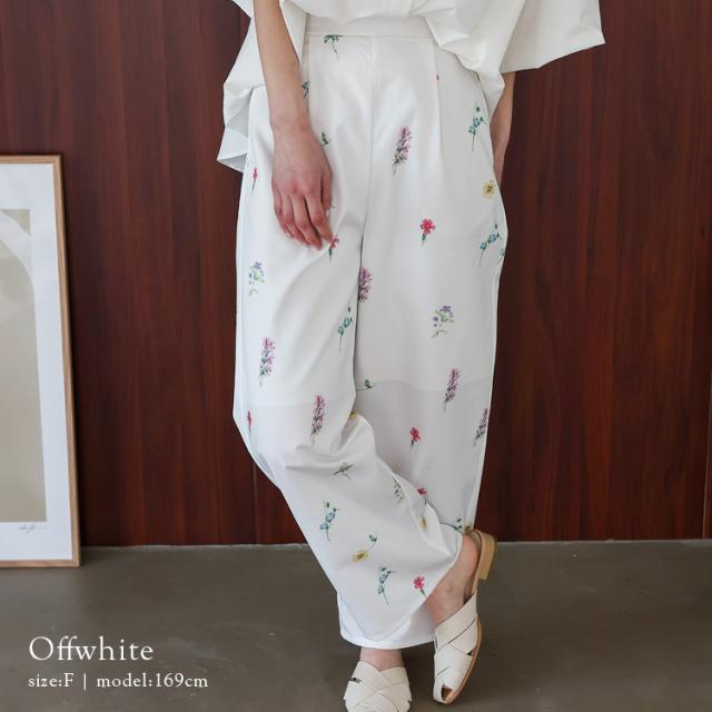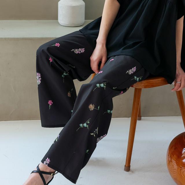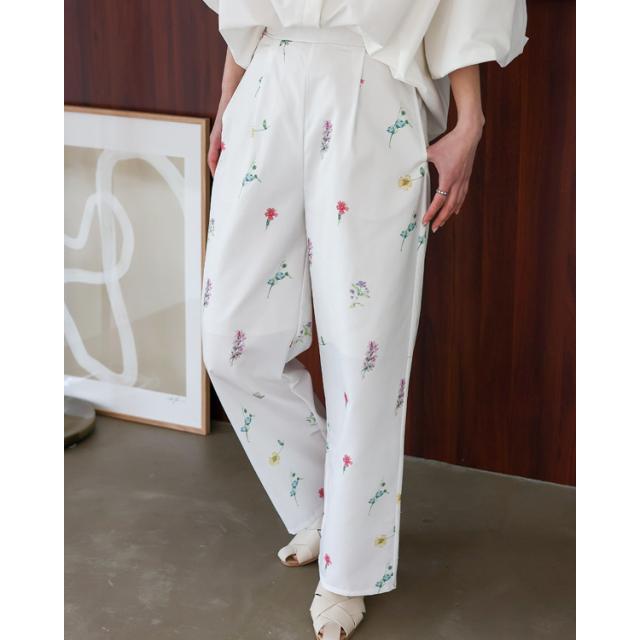 上品な大人のフラワーパンツ。