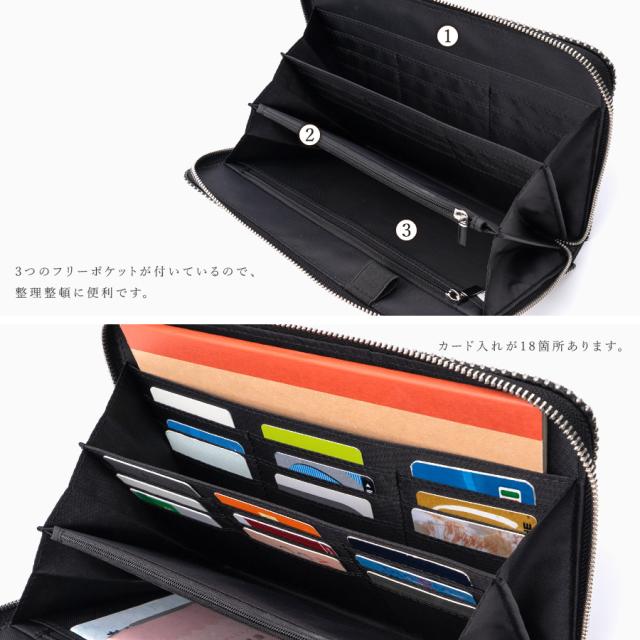 ●内ポケットファスナー付きメッシュポケット1、ファスナー付き仕切りポケット1、マチなしオープンポケット1、カード入れ18