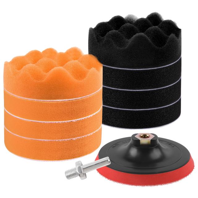 【パッケージ内容】細目:オレンジ平スポンジ×3、オレンジ波形スポンジ×1,極細目:黒色平スポンジ×3、黒色波形スポンジ×1,円形軸×1、研磨パッド×1,多様な研磨作業に適しています
