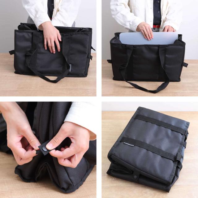 使い終わったら、コンパクトに収納可能です。側面のスナップボタンで広がりを防ぎ、スマートに持ち運べます。バッグの隙間にもスッと収まりやすく、毎日の持ち歩きもラクラクです。